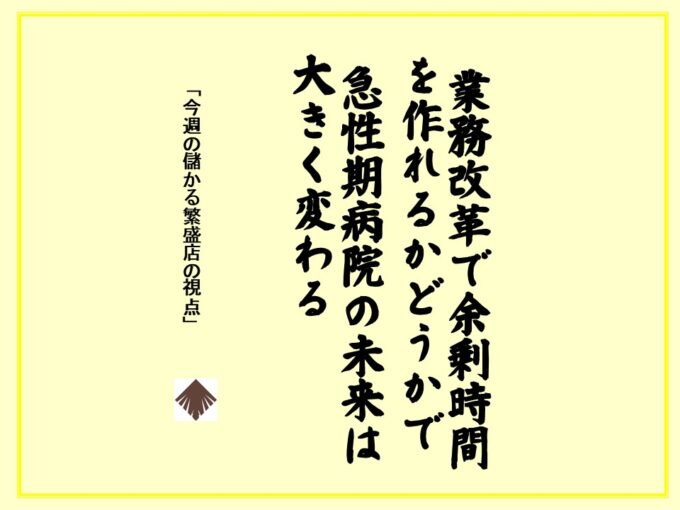 今週の儲かる繁盛店の視点 611号:「なぜ、本業で儲けが上がらないのか?急性期病院の構造的な問題とは?」