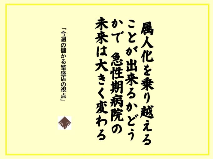 今週の儲かる繁盛店の視点 613号:「属人化問題を解決出来る病院と出来ない病院の違い」