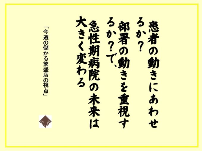 今週の儲かる繁盛店の視点 619号:「患者の動き中心の病院と部署の動き重視の病院の違い」
