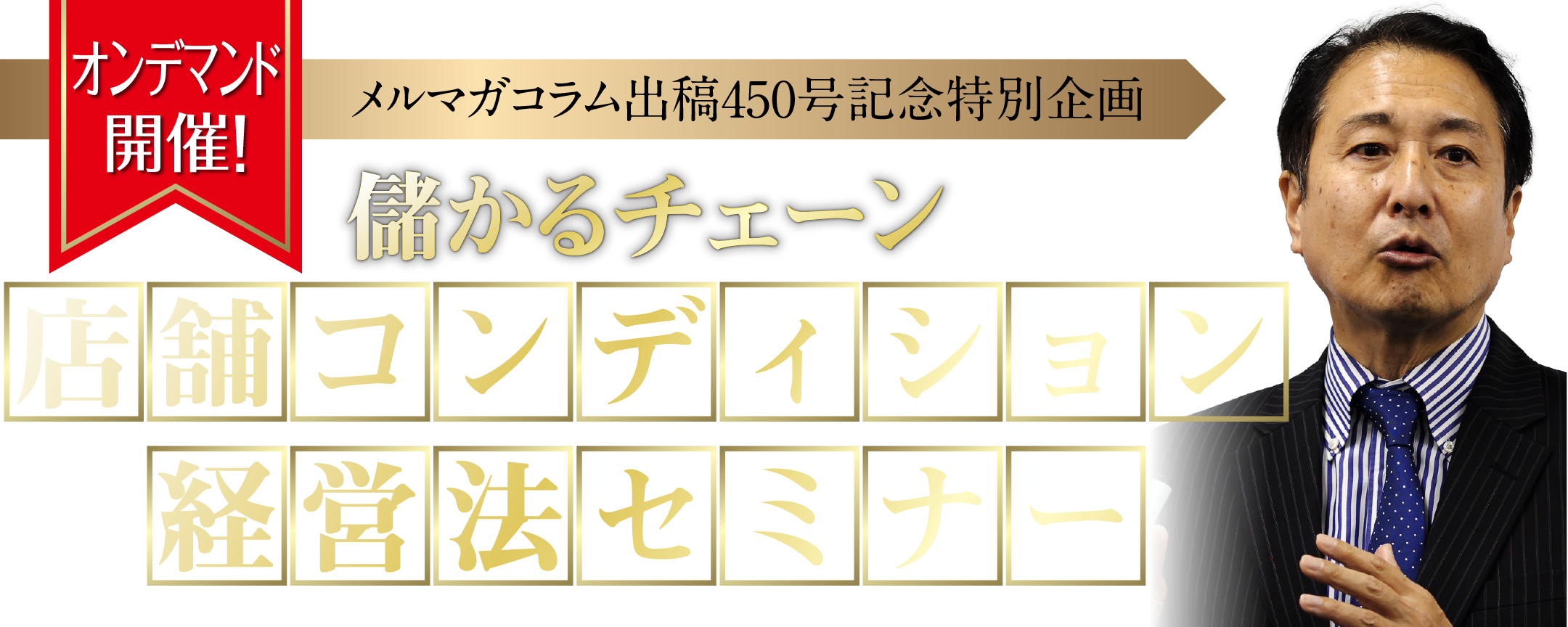 今週の儲かる繁盛店の視点コラム出稿450号記念特別企画 「儲かるチェーン 店舗コンディション経営法」オンデマンドセミナー