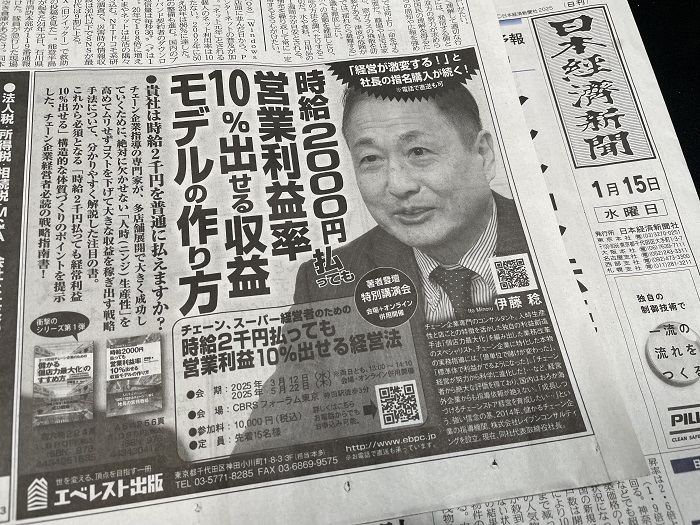 日本経済新聞 1月15日朝刊(2面)に伊藤の書籍広告が掲載されました!
